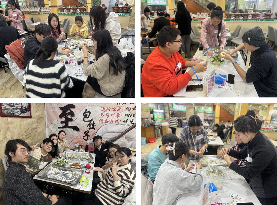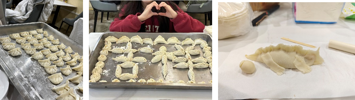 随着西北餐厅的工作人员协助提供的饺子皮和饺子馅陆续送上,参与活动的同学们热情地参与到了包饺子的过程中。有些轻车熟路,有些现学现卖,在包好各式各样、体现出每位同学风格的“正常饺子”之后,同学们也开始大胆创新,包出各种形态各异的“特色饺子”。更有同学开始“沿桌学艺”,互相请教饺子的包法,在劳动的欢声笑语之余,新的情谊也在生长和流淌。