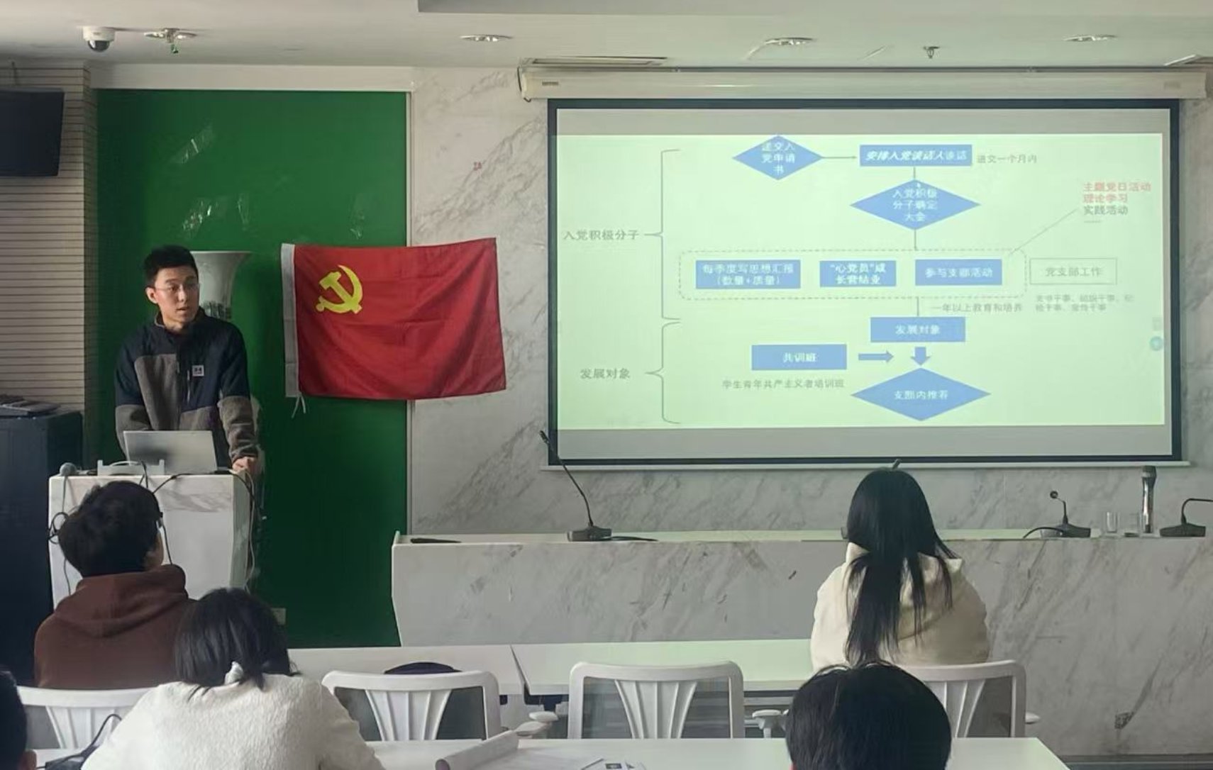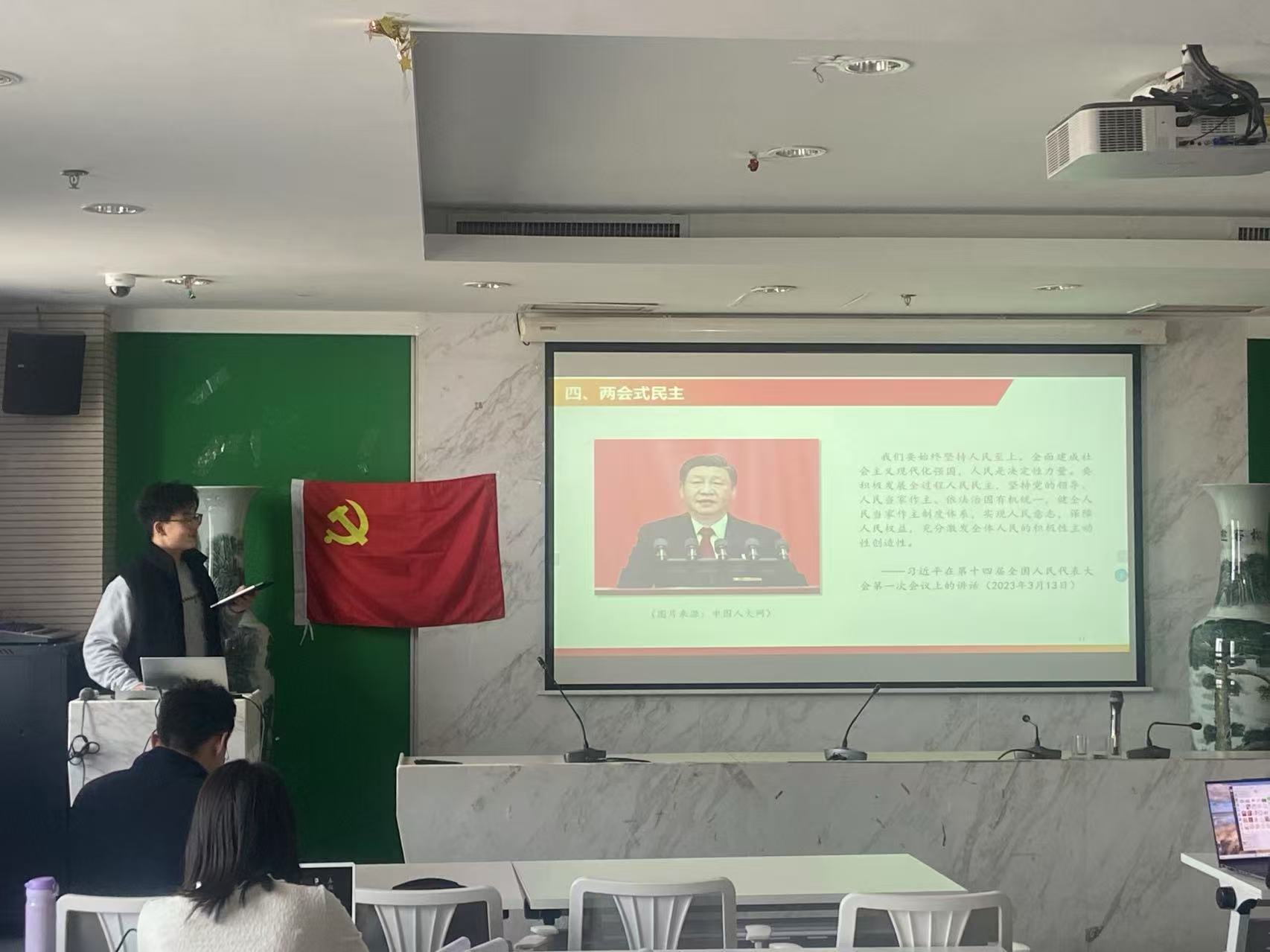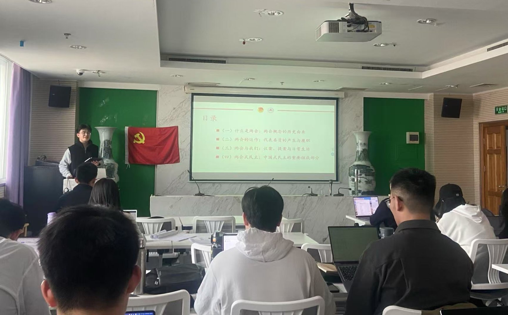 本次入党积极分子确定大会顺利结束,随后召开的是本月主题党日活动。 恰逢今年全国两会盛大召开,本次活动邀请到了北京师范大学学生会宣讲团成员孙梓耀同志为我们作主题为《从全国两会读懂中国式民主》的主题党课分享。