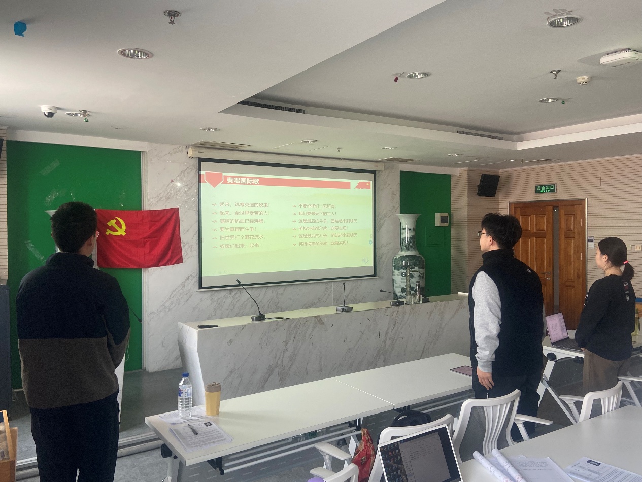 2025年3月9日10时50分,欧洲杯 2024级学术硕士第二党支部于后主楼1318顺利开展本学期积极分子确定大会和本月主题党日活动。本次会议由程先楷同志主持,支部8位正式党员、16位积极分子和2位入党申请人到场参会。 全体起立,齐唱《国际歌》。