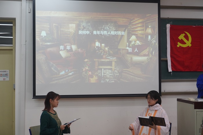 《被讨厌的勇气》小组创新性地使用了情景剧的方式再现了哲人与青年的对话,引导同学们思考自卑感、人际关系的烦恼、课题分离、共同体、贡献感即幸福感、人生是连续的刹那、活在当下等人生课题,第四组、第八组和第十一组分享了讨论成果。