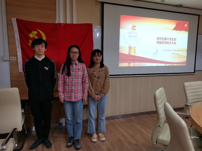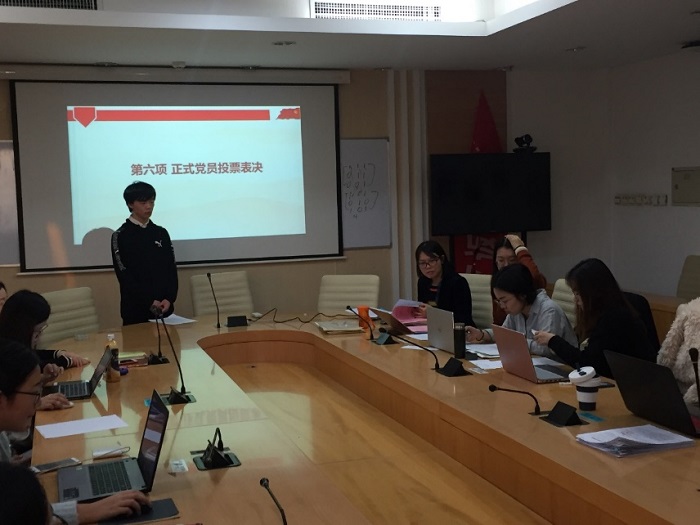 研究生第六党支部于2019年11月28日下午3:30,在后主楼1316西会议室召开了预备党员转正会议,共有16名党员,其中12名正式党员、4名预备党员参加,另有1名党员因事请假。支部理论指导老师黄利老师出席了本次会议。党支部书记杨颖同学主持了本次大会。此次会议中陈俊霖、程选州和王玉洁三位同学提出转正申请,经大会全体党员投票表决,顺利由中共预备党员转为正式党员。 首先全体人员起立,奏唱国际歌。之后党支书杨颖对本次转正会议的内容进行了说明,并介绍了本次大会流程及申请转正党员的顺序。随后各位预备党员依次向党支部汇报了各自在一年预备期内的学习、工作、生活、思想等情况,并提出了按期转正的申请。入党介绍人详细介绍了预备转正的同学在校表现,其他党员同学认真倾听,并给予诚恳的建议。 支部大会讨论阶段,党内同志对三位提出转正申请的预备党员进行了讨论和评议。李昌锦同学认为俊霖同学给自己最大的感受就是学习成绩非常好,在科研领域也是同龄人中的佼佼者,一直非常佩服和崇拜。但是可能俊霖对自己的要求比较高,给自己造成了比较大的压力,显得比较疲惫。林秦伊同学认为程选州同学情绪很稳定,无论遇到什么事情都能冷静处理。但是正是因为比较冷静,因此会给人造成比较冷漠的错觉,但事实上她对人是很用心的,希望选州同学在之后的日子里能更加积极主动地对待别人。魏铭同学认为玉洁是一个阳光积极的女孩,与同学相处非常好。但是要学会合理安排自己的时间,权衡自己的精力,保证自己能有做最有意义的事情。 最终全体党投票员表决,结果为同意陈俊霖、程选州和王玉洁三位同学的转正申请均全票通过,同意他们按期转为中共正式党员。随后三位同学发表了转正感言。 最后三位按期转正的党员同学合影留念,全体与会人员合影,转正会议顺利结束。 供图供稿:李昌锦 研究生第六党支部 |