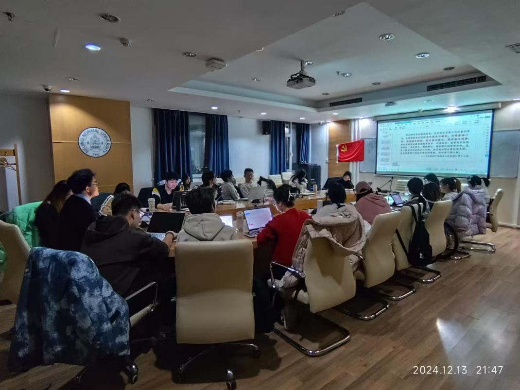 2024年12月14日20时,欧洲杯 本科生第二党支部于后主楼1316西会议室顺利召开2024年度民主评议组织生活会。本次会议由党支部书记黄彤彤同志主持,支部内10名党员及15名预备党员共同参与。 会议开始。首先,全体起立,奏唱《国际歌》。 会议内容第一项,党支部书记黄彤彤同志进行支委会工作汇报。党支部书记黄彤彤同志对过去一年的支部工作进行了汇报总结。