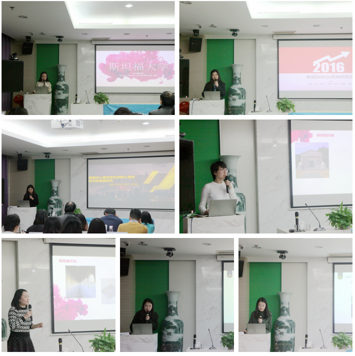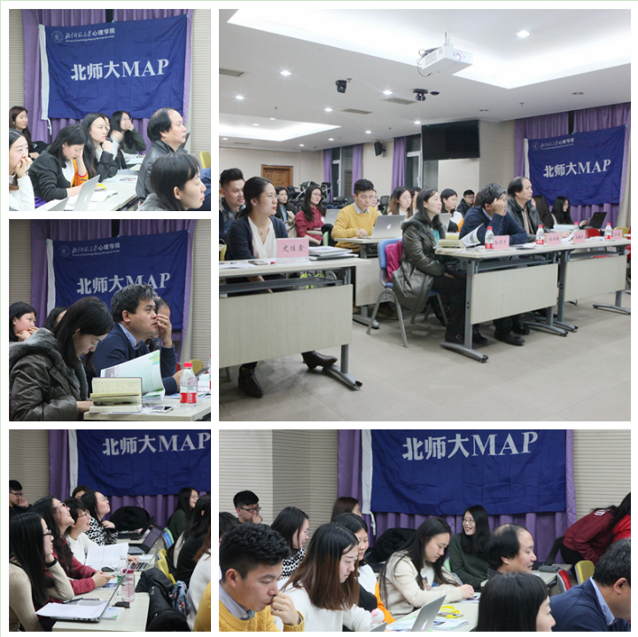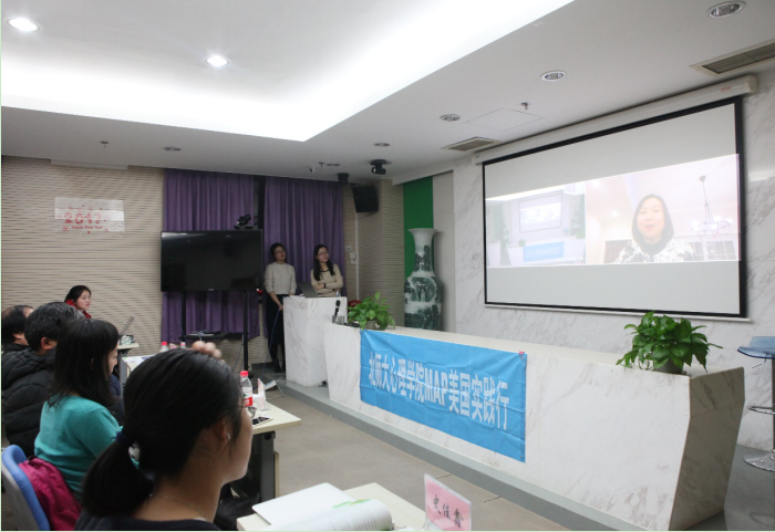 1月10日,北京师范大学心理学院MAP美国实践行汇报展示会完满结束,这也代表了应用心理专业硕士(MAP)第一次前往美国的实践交流项目的圆满落幕。今年11月28日始,2015级MAP的EAP、测量人力、婚姻家庭、临床箱庭、生涯规划五个方向的26位学生经由学院筛选,由史佳鑫老师和贾子豪带队赴美国加州开展了为期两周的学习交流。此次交流活动,同学们不仅进入斯坦福和伯克利顶级学府聆听专业课程,也进入谷歌、英特尔、Facebook等企业领略科技创新,同学们还进行了自主的调研访谈,此次实践行汇报展示会既是对此次实践行做的一个总结,也是进一步思考再前行的开始。 本次活动主要以2015MAP美国实践行学生成员分享在美国加州的见闻与感想为主,活动邀请到了心理学院教授张西超老师、心理学院教授刘翔平老师和MAP中心主任孙舒平老师莅临指导,史佳鑫老师、2015MAP美国实践行成员以及对此行感兴趣的师生一同参加了此次汇报会活动。值得一提的是,考虑到因个人原因无法到场的实践行成员,活动采用了多人在线会议系统,通过远程视频的方式与大家分享自己的收获。活动由实践行成员、2015级EAP方向的笪姝同学主持。首先,活动以一段风采掠影式的视频开场,让在场的观众从感官上感受到了此次实践行充实丰富的行程;随后,由26位去到美国加州的同学以小组为单位依次分享了他们在课程学习、校园观察、商业大赛、企业参访及文化体验的思考、收获与感悟,并对美国高校校园空间环境设计、心理科普、高校社团文化和大学生就业问题等方面取得的调研成果进行报告。报告后,三位嘉宾精彩点评,表达了对同学们的祝贺,高度评价了同学们所取得的成果,并鼓励同学们珍惜机会,积极承担社会责任,将所知、所学、所感能够反馈给社会,做改变世界的星星之火。