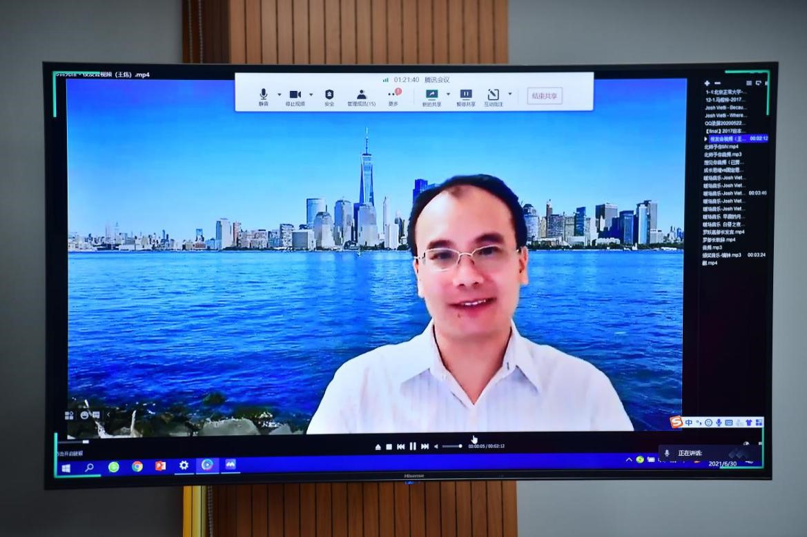 美国纽约城市大学研究生院副教授、02级本科王炜学长作为线上参会的校友代表做了讲话,跟大家分享了将在北美学习和工作的北师大欧洲杯 校友们凝聚在一起的组织经验,并表示会与北美校友们一起努力,为母校心理学科的发展贡献力量! 图 13 校友代表王炜学长讲话