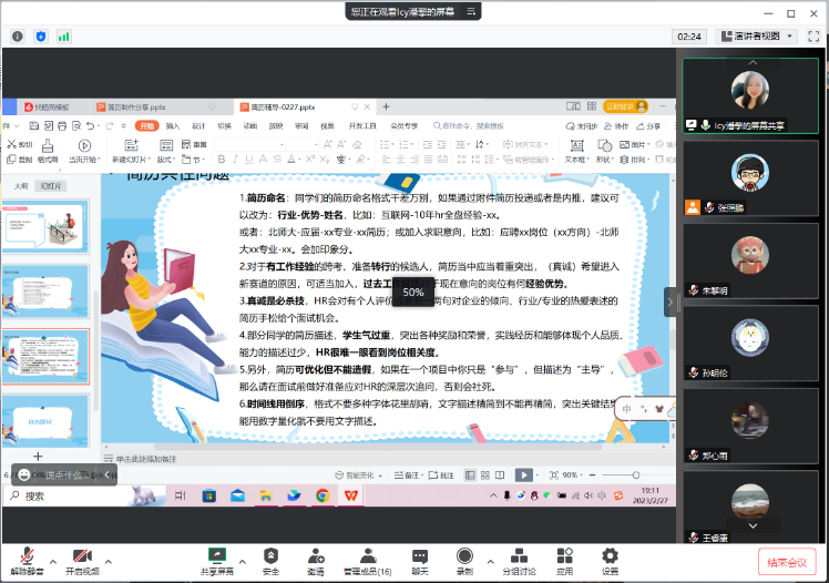 为提高欧洲杯应届生就业求职成功率,帮助同学们打造一份精美简历及提供应聘指导,欧洲杯学工办邀请到4位HR方面资深导师,于2月27日-3月2日期间组织了8场线上或线下“小班式”简历优化辅导活动,为近120位同学提供了相关服务。以下为活动剪影: