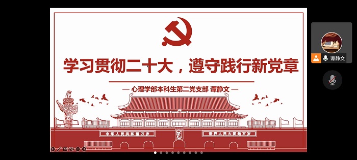 接着,谭静文同志分别从党章建设的历程、修改党章的意义、党的二十大党章的修订内容这三个方面带领同志们学习贯彻党的二十大中新党章的部分。