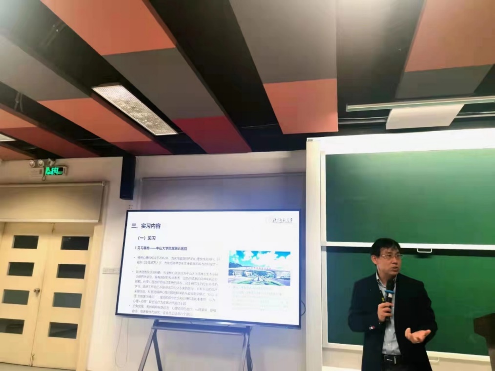 随后,具体负责见习工作的张军副教授对见习基地、见习主要内容、见习管理规定、见习常见问题及防疫要求等做了详尽介绍。本次见习基地由珠海四家医院组成,分别是中山大学附属第五医院精神心理科、珠海市第三人民医院(新院)精神科、珠海市妇幼保健院儿童心理卫生科和珠海白云康复医院。四所医院基本涵盖了从儿童青少年、成年到老年群体的主要精神障碍患者及常见的临床心理问题。各医院方面高度重视,专门组建了临床经验丰富的医师团队作为代教导师,以满足北师大临床与咨询心理专业硕士的见习需求。整个见习工作用将持续2周时间。每个同学都将有机会去3家医院完成全部见习工作。