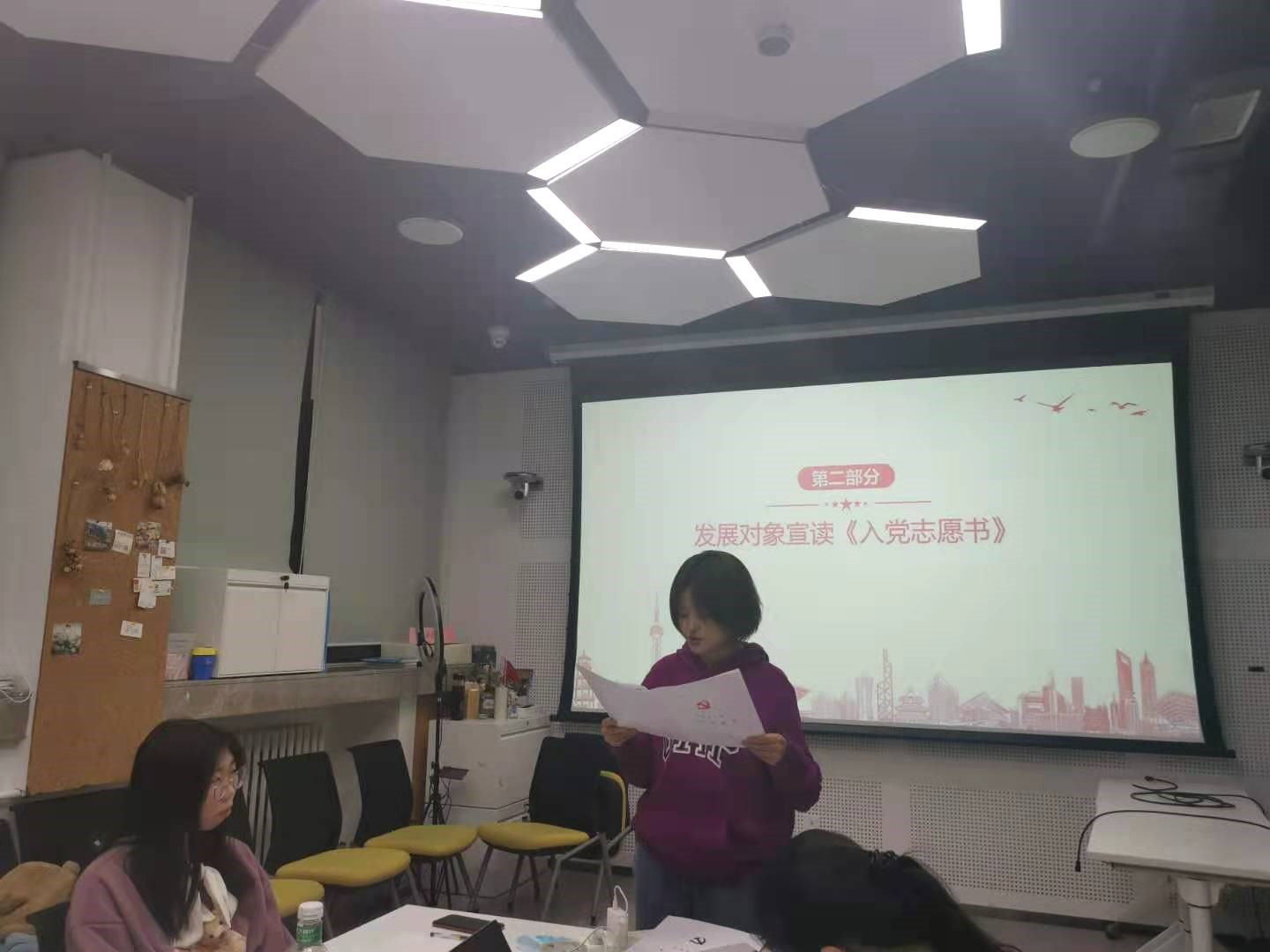 2020年11月29日晚上,研究生第十六党支部的成员在金丰和306教室召开了2020年度的党支部发展大会。第十六党支部党支书詹洁辰主持了本次会议。在本次会议上,刘锦潞、常娜、彭逸云三位发展对象被发展为预备党员,光荣的加入党组织,成为第十六党支部的一员。 会议内容安排包括:发展对象宣读入党志愿书、介绍人宣读意见、支书宣读发展对象政治审查报告、支部书记主持支部大会讨论、宣布计票人和监票人支部大会全体正式党员投票表决、宣读支部大会决议、发展对象发表入党感言、党支部全体党员合影留念这八个流程。对于刘锦潞、常娜和彭逸云三位同学依次进行发展,发展完刘锦潞同学后再分别对常娜、彭逸云同学进行发展,以下新闻内容根据会议流程对于三位同学的讨论和结果进行了合并介绍。 全体起立唱完国际歌后,第十六党支部党支书詹洁辰介绍本次大会流程及发展顺序,本次发展对象为刘锦潞、常娜和彭逸云三位同志。 刘锦潞宣读入党志愿书,说明入党动机及平时的表现,其介绍人为申思雨、杨思敏,宣读介绍人意见;常娜宣读入党志愿书,其介绍人为刘明玥、詹洁辰,宣读介绍人意见;彭逸云宣读入党志愿书,其介绍人为詹洁辰、刘明玥,说明入党动机及平时的表现。 支部书记詹洁辰同志宣读政治审查综合报告并提请支部大会讨论。到场的党支部成员都依次进行热烈的讨论。 党支部成员认为刘锦潞同志积极向党组织靠拢,该同志积极向党组织靠拢,关心时事政治,努力学习相关理论知识,在学习上勤奋努力,认真科研,平时与同学关系融洽,群众基础良好,积极参加班级院系活动,在思想上要求进步,关心国家大事;在学习上,肯钻研,善思考;在生活上,乐观向上,助人为乐。综合来看,一致同意刘锦潞同志成为中国共产党预备党员。 党支部成员认为常娜同志自从提出入党申请后,积极参加党组织活动,能经常向党组织汇报思想,自觉以党员标准严格要求自己,有服务同学的意识和上进的心态,平时不计较个人利益,有无私奉献和为党的事业奋斗终身的决心,该同学勤奋刻苦,吃苦耐劳,希望以后能更加严于利己,综合来看,一致同意常娜同志成为中国共产党预备党员。 党支部成员认为彭逸云同志自觉用党员标准严格要求自己,认真学习党的基本理论、基本路线和基本知识,不断提高对党的认识和政治理论水平,入党动机端正;学习方面刻苦努力,认真学习专业知识;积极参与欧洲杯项目,工作方面十分认真,能够较好地完成各项工作任务;生活方面能做到严于律己、宽以待人,能够很好地团结同学。综合来看,一致同意彭逸云同志成为中国共产党预备党员。 讨论过后,支部大会全体正式党员进行表决。詹洁辰同志宣读支部大会决议:支部大会应到会正式党员5名,实到会4名,收到书面意见1份。大会采用无记名投票的方式进行表决。对于刘锦潞、常娜和彭逸云同志的表决结果皆为:5票赞成,0票反对,0票弃权,赞成人数超过应到会正式党员的半数,支部大会通过接受刘锦潞、常娜和彭逸云同志加入党支部,成为中国共产党预备党员。 最后,刘锦潞、常娜和彭逸云三位同志都发表了感言,表示接受同志们提的意见,入党不是终点,而是新的起点,三位预备党员表示将不断地学习进步提升自己,为共产主义事业奋斗终身。大家在大会的最后进行合照留念,并祝贺三名新同志的加入。 撰稿人:刘明玥 |