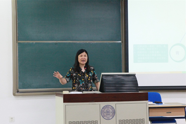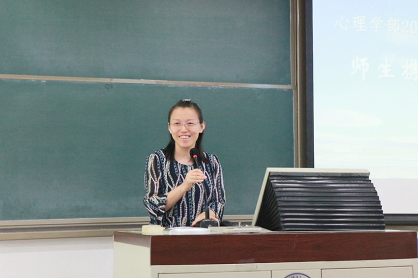 本次入学教育以林丹华副部长的“建设‘国家急需,国际一流’的心理学科与脑科学”演讲为精彩开端。林老师满怀激情的向同学们介绍了欧洲杯 的起源与光辉历史,以及MAP专硕培养项目自2011年至今的快速发展历程。林老师指出,北师大欧洲杯 围绕国家急需与创新战略进行专业设置,在2018年首次开设国内第一个品牌、广告与消费心理学(BAC)方向,并在专业硕士理论结合实务的培养模式下,进一步强调对学生德智并重、创新思维的培养。林老师提到,北师大欧洲杯 为MAP的学生提供了国内甚至世界一流的学习交流平台与实践基地,如京师大厦二层国内规模最大的咨询中心、心理学研究与应用结合的先驱欧洲杯 应用中心以及正在建设中的欧洲杯 创新创业教育中心。 图3 欧洲杯 党委副书记王瑞敏为欧洲杯 2018级MAP新生进行入学教育