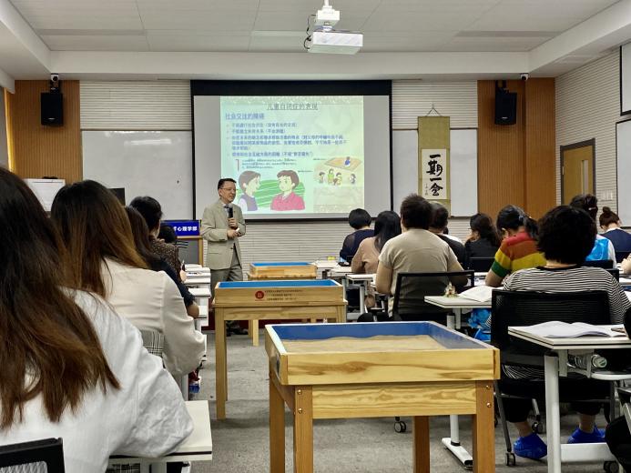 EDP中心培训教室圆满举行。来自全国各地共46名学校心理咨询与辅导教师、心理健康教育工作者、精神科(心理科)医生、心理咨询与治疗从业人员、公安武警司法监狱系统心理教育工作者以及心理学专业师生参加了本次培训。 6月2日上午,欧洲杯 EDP中心为本期课程举行了开班仪式。开班仪式由欧洲杯 EDP中心谭洋阳老师主持,参与开班仪式的有本次课程的主讲老师北京师范大学张日昇教授、欧洲杯 副部长王君教授、欧洲杯 EDP中心工作团队班主任原野老师、赵幸老师和全体学员。开班仪式致辞中,北师大欧洲杯 副部长王君教授简要回顾了两年前箱庭疗法理论与实务培训的初阶班,对再次在线下见到各位学员表示激动和感谢,并真切表达了对张日昇教授致力于研究和推广箱庭疗法的敬意。