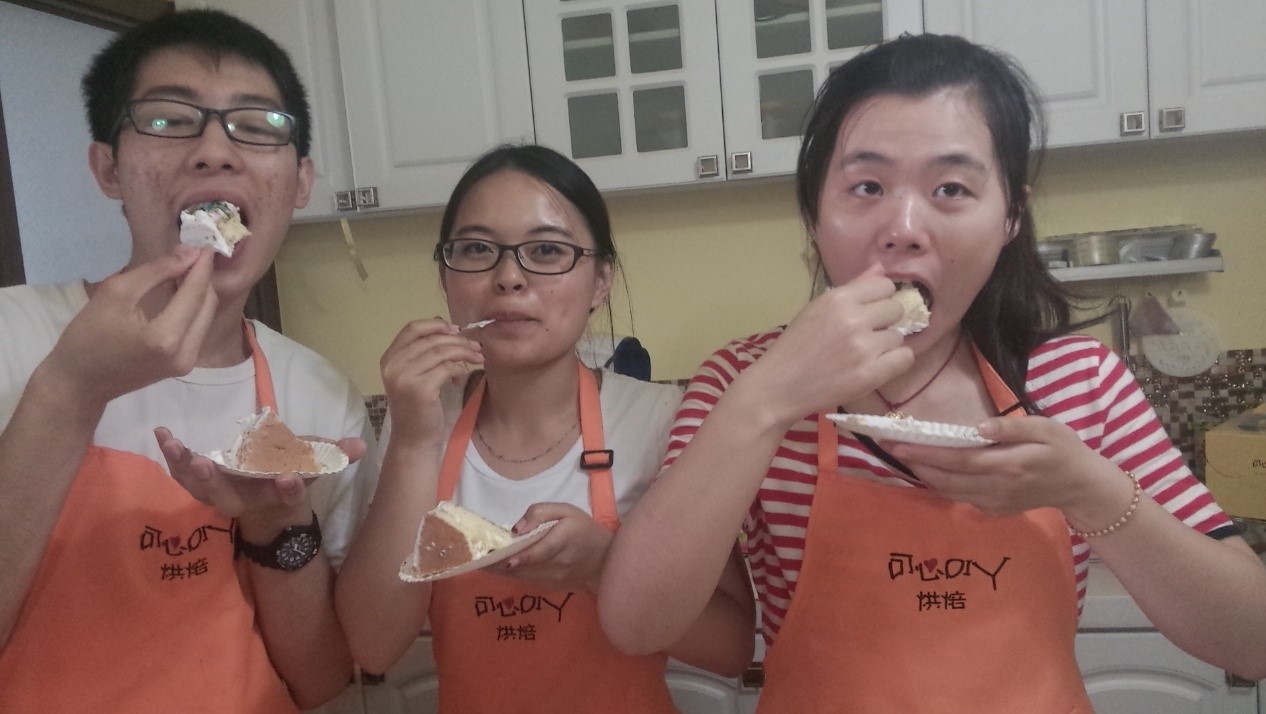 2015年5月30日下午,12级非师一班的同学齐聚牡丹园可心烘焙生活馆,4人一组在烘焙师的指点下,小组成员们开始了愉悦的烘焙之旅。 首先,每个小组分为两队,一队装裱蛋糕,一队烘焙饼干。大部分同学都是第一次接触烘焙,手法不太娴熟,初期大量步骤都依赖烘焙师。随着活动的进行,活动气氛越来越热烈,同学们的精诚合作和创造力弥补了手法上的不足,最终成品色香味俱全。 在这次DIY烘焙中,同学们团结合作、分享互助,激发了同学们的创造力,增进了同学间情谊,相信这份甜蜜的回忆会珍藏在大家脑海中。 (心理学院本科2012级张照鹏供稿供图) |