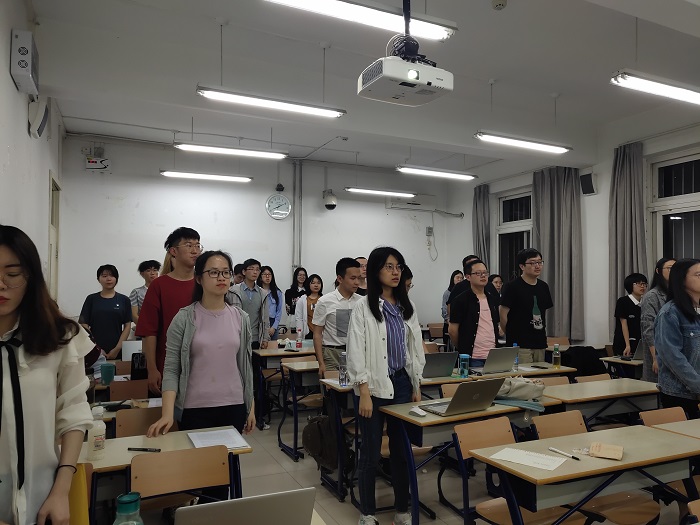 全体到场人员合唱《国际歌》后,主持人陈作为同志对本次大会的流程及发展对象顺序进行介绍,随后陈逸群、杨格晴、赵一帆分别宣读了入党志愿书,并由第一介绍人宣读介绍人意见,之后与会同志对发展对象的生活、学习、工作情况进行了民主评议,最后全体正式党员进行了不记名投票。林思丽老师根据三位发展对象的表现和民主评议情况提出针对性意见和建议。