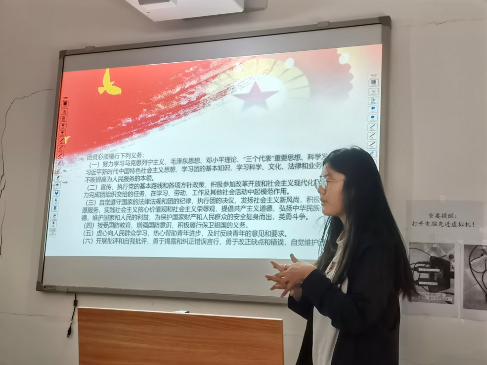 第二个议程是入团仪式。首先,大家怀着崇敬之情唱响国歌。随后,张瑜同学宣布田汉墉同学成功入团,并带领田汉墉同学进行了新团员宣誓。接着,全体团员重温入团誓词,并由新团员田汉墉宣读了团员义务和权利。然后,田汉墉同学进行了新团员发言,表达了成功入团的激动心情。