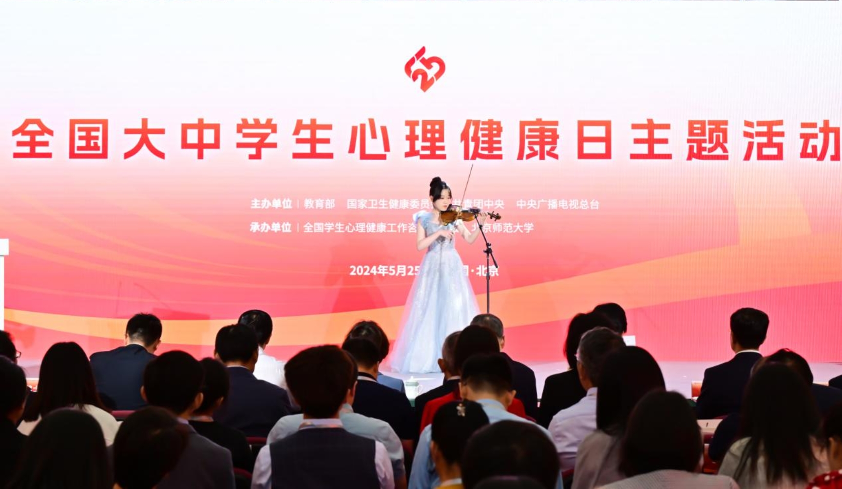 为进一步推进落实教育部等十七部门联合印发的《全面加强和改进新时代学生心理健康工作专项行动计划(2023—2025年)》,推动全国学生心理健康宣传教育和促进学生心理健康学术交流,5月25日,全国大中学生心理健康日主题活动在北京师范大学举办。本次活动由教育部、国家卫生健康委员会、共青团中央、中央广播电视总台联合主办,全国学生心理健康工作咨询委员会、北京师范大学承办。教育部党组成员、副部长、总督学王嘉毅,中央广播电视总台副台长邢博,北京师范大学校长于吉红,全国学生心理健康工作咨询委员会主任委员董奇,国家卫生健康委员会医政司副司长李大川,共青团中央维护青少年权益部副部长张豪出席会议。教育部有关司局和单位负责同志,北京师范大学有关负责同志,全国学生心理健康工作咨询委员会委员,部分学生心理健康一线工作者及学生代表等参加活动。活动在学生小提琴独奏乐曲中拉开帷幕。