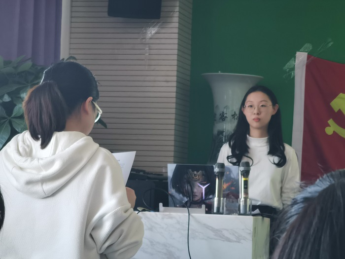 之后,预备党员陈璐、邓艾林、陈雪岩、李翊赫四位同志分别向党组织汇报了她们在预备党员期间的思想、工作以及学习等各方面的表现。这四位同志表示自己在成为预备党员的一年里学习到很多、成长了很多,也正确认识了自己的不足,同时表示,在成为一名正式党员后也会继续用严格的标准规范、完善、提高自己。