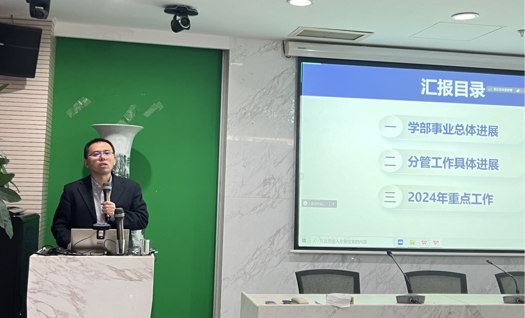 骆方副部长、韩在柱副部长、刘春荣副部长、王君副部长、胡思源副部长、闫琰副书记、史佳鑫副书记、韩卓部长助理就分管工作本硕博教学、专硕培养、双创中心、国际交流工作、EDP中心工作、行政人事管理、科研管理、教师党建思政、宣传和学工等做了述职汇报。