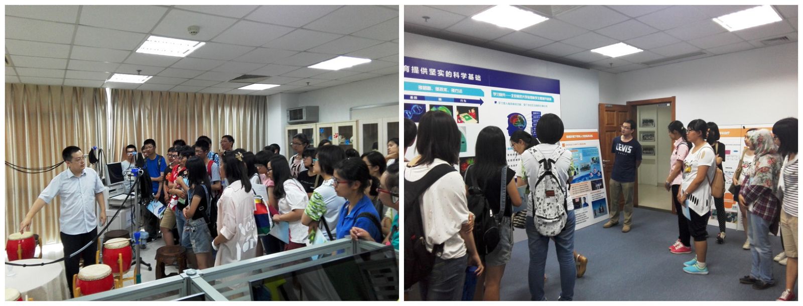 2014级新生开学以来,心理学院陆续举办了2014级新生入学教育系列活动。 9月8日,心理学院在后主楼1318开展2014级研究生第一次新生入学教育活动兼班会,副院长林丹华、研究生教务员刘虹雨、研究生事务助理李爽、2014级研究生班主任张丽霞等老师以及2014级硕士、博士共计85余人参会。在此次新生入学教育活动中,副院长林丹华为新生介绍了心理学院的人才培养计划和教学安排,鼓励学生要树立国际意识,在学院建立国际一流学科的过程中,希望我们的学生对自己提出更高的要求,夯实基础明确目标,争做一名出色的研究生。 9月15日,学院组织2014级本科生和硕士研究生新生及部分老生参观学院实验室,沿着习总书记的参观路线,在杜博琪、胡思源等专业老师的讲解下,对北师大心理学的建设成果、研究方向及现代化研究手段有了更直观的认识,对心理学专业有了更多的认同,增强了新生对学院的归属感和自豪感。 9月25日,心理学院研究生会为我院2014级硕士研究生新生组织了素质拓展活动,通过互动游戏促进新生之间相互认识,增进彼此的交流,2014级硕士班主任张丽霞、研究生会及2014级硕士新生共计50余人参加了本次活动。 9月26日,学院在后主楼1420对2014级研究生新生党员开展入学教育活动。分党委书记乔志宏、副书记王瑞敏、党务秘书张丽霞以及我院14级研究生新生党员参加此次会议。会上乔老师重点跟同学们分享了他对党的十八届三中全会报告的认识和理解,并为在座的新生党员传达了十八届三中全会报告的精神,探讨了报告对我们学习生活的影响。 9月27日-29日,我院专职辅导员史佳鑫老师联合生活指导室为2014级本科新生举办了宿舍团队建设活动,三次活动覆盖了2014级21个新生宿舍100余人。 10月15日,我院在教四101举办2014级本科新生入党动员大会,分党委书记乔志宏、副书记王瑞敏为本科新生进行入党动员教育。本科生第二党支部的支部书记张照鹏和组织委员王桧银就入党流程做了介绍。