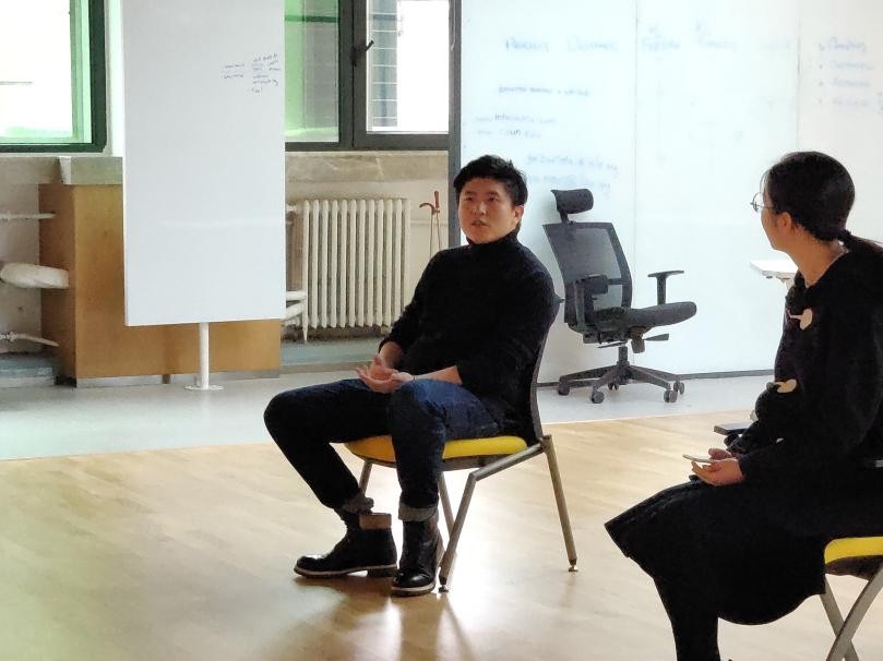 图1 欧洲杯 马慕晗老师为同学们介绍赛客双创空间