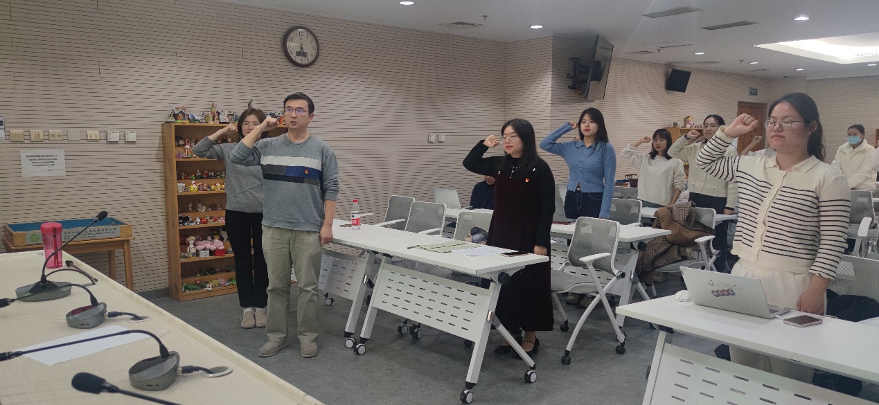 最后,党员同志进行无记名投票,并由支部书记宣读支部大会决议。本支部共有党员21人,其中正式党员20人,预备党员1人。实到正式党员19人。经投票表决,19票赞成,0票不赞成,0票弃权,赞成人数超过应到会正式党员的半数,支部大会通过夏月同志按期转为中国共产党正式党员。 夏月同志也发表了自己的转正感想,在准备转正的一年中,她得到了许多同学帮助。无论是询问多难的问题,多繁琐的材料,同学们都会给予她悉心的指导。夏月同志也表示要继续向支部中的优秀党员学习,发挥耐心,在思想和学习、生活中,继续进步。 最后,胡思源老师带领党支部全体同志重温入党誓词。此次会议圆满结束。