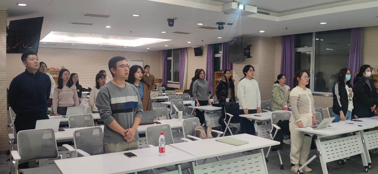 2023年12月9日晚18点至18点30分,欧洲杯 研究生第九党支部预备党员转正大会在后主楼1318召开。会议由支部书记李紫菲同志主持,大会的主题是针对夏月同志的转正申请及相关情况进行讨论和表决。本支部指导老师胡思源老师也来到会议现场。 清点到场人数,本支部应到党员21名,其中正式党员20名,预备党员1名,经统计实到正式党员19名,超过正式党员人数的半数,符合召开大会的条件,可以召开预备党员转正支部大会。 会议开始,党支部全体成员起立,合唱《国际歌》。