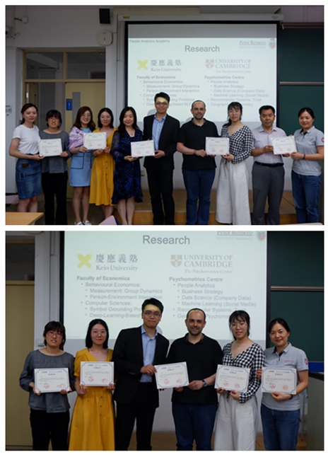 第一天课程教授介绍了人力分析的历史、现状及未来发展,基于全球顶尖企业的真实案例,探索组织中的战略性机构以及人力分析职能的潜在影响,讨论人力分析技术如何能够用于测评、提升或替代现有的人才招聘和发展手段。 第二天的课程讲授了如何对来自人力部门以及企业其它系统的数据进行管理和分析,介绍了R, Python以及其它分析工具,并演示了如何利用R对数据进行可视化及描述性分析,带领大家操作了基于企业的结构化数据构建预测模型的流程。第三天的课程主要针对非结构化数据的处理,讲授如何对非传统来源(如社交网络,参与度调查或管理评估报告等)的数据进行处理。此外还演示了如何利用网页爬虫及推特进行数据挖掘,并介绍了多种形式的应用程序编程接口。 三天的课程包含小组任务以及展示和提问环节,为同学们提供了充分的交流机会。 图5 欧洲杯 教师代表和主讲老师一起为“数据挖掘促进人员管理水平提升”工作坊学员代表颁发证书
