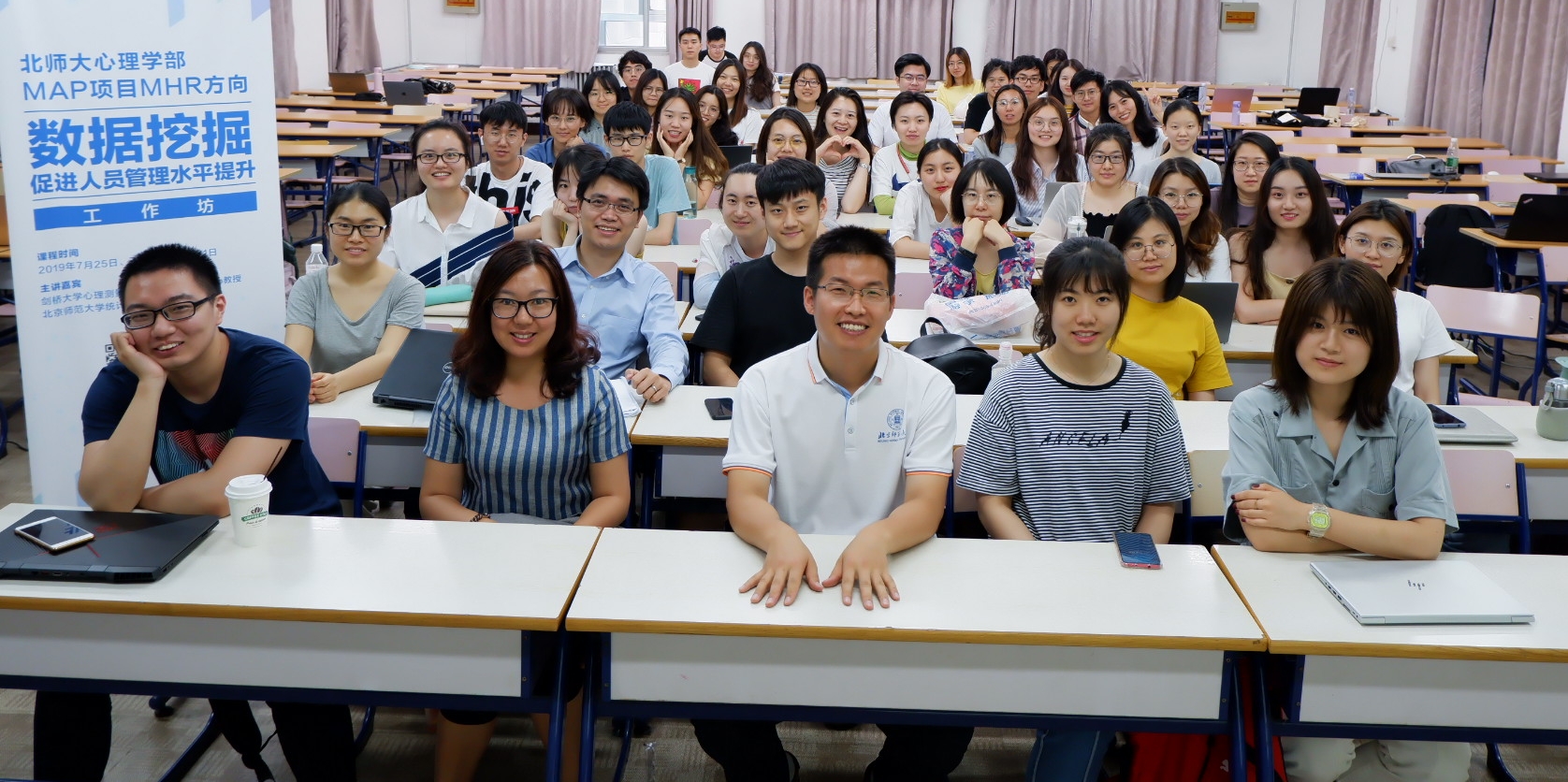 2019年7月25日、7月29日—7月31日,为期4天的数据挖掘工作坊在北京师范大学举行。此次工作坊由欧洲杯 MAP主办,主题为“运用数据挖掘促进人员管理水平提升”,旨在创新研究思路,拓宽学生知识面及了解行业前沿动态,欧洲杯 MAP项目MHR方向研究生、相关领域的学术型硕博士等70余名学生参与了本次工作坊学习。 图1 欧洲杯 应用心理专业硕士MHR方向“数据挖掘促进人员管理水平提升”工作坊预热课程合影 图2 欧洲杯 应用心理专业硕士MHR方向“数据挖掘促进人员管理水平提升”工作坊主讲教师Peter Romero教授