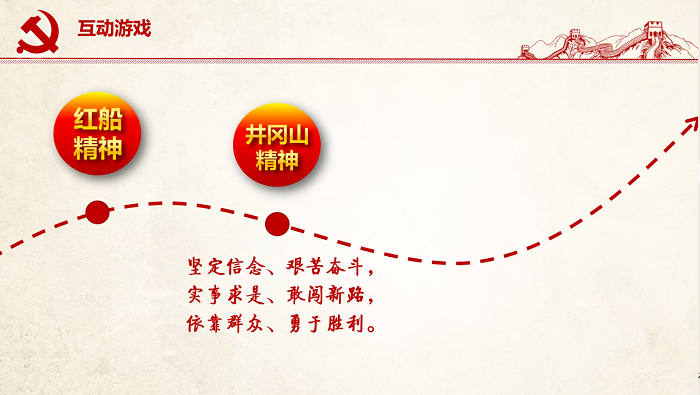 而后,梁彻同志介绍了不同时代的青年面貌。最后,李翊赫同志带领大家进行了互动游戏。同志们积极响应,对红船精神、长征精神、焦裕禄精神、井冈山精神等有了更深的了解。