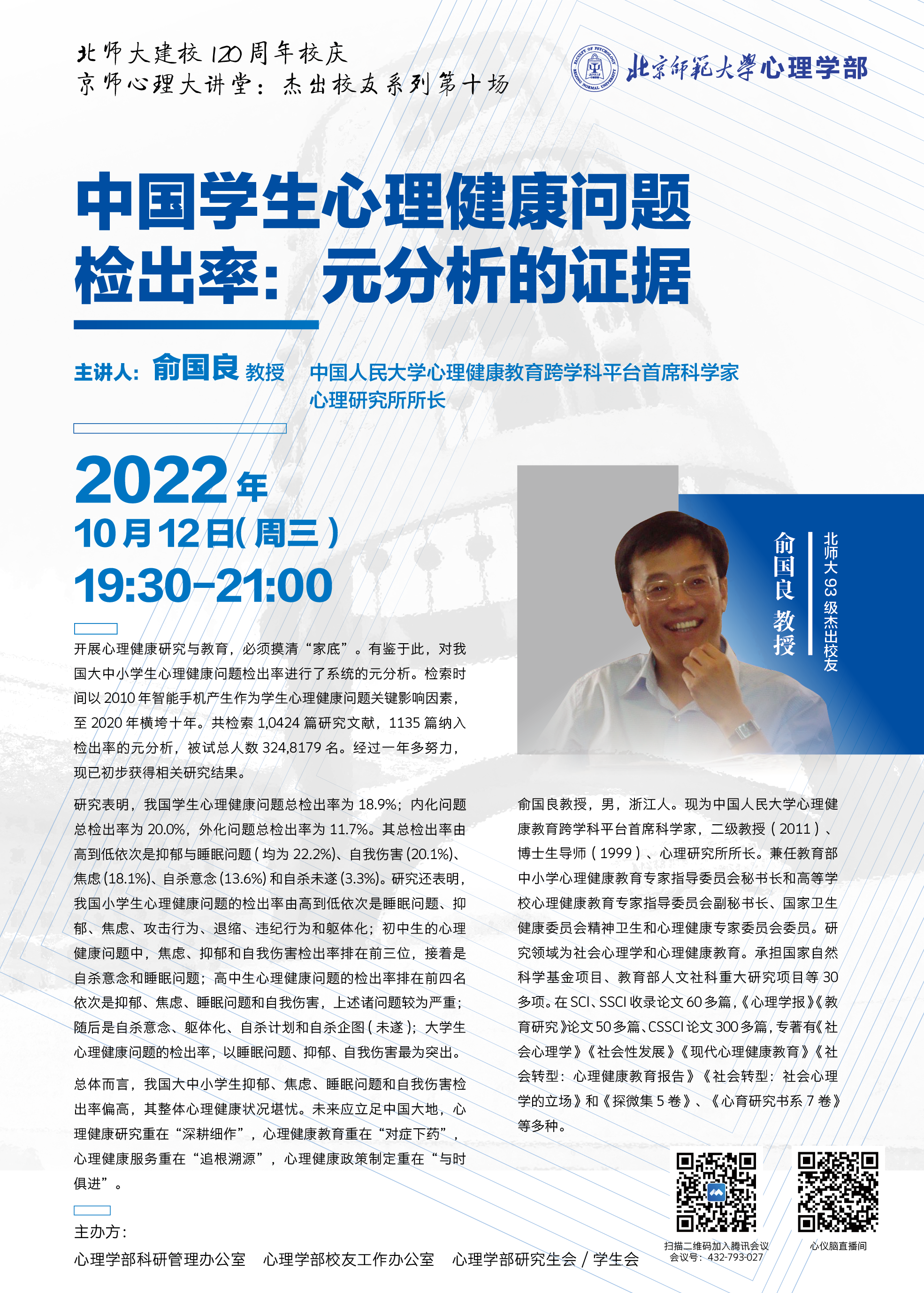 【校友讲座】中国学生心理健康问题检出率:元分析的证据