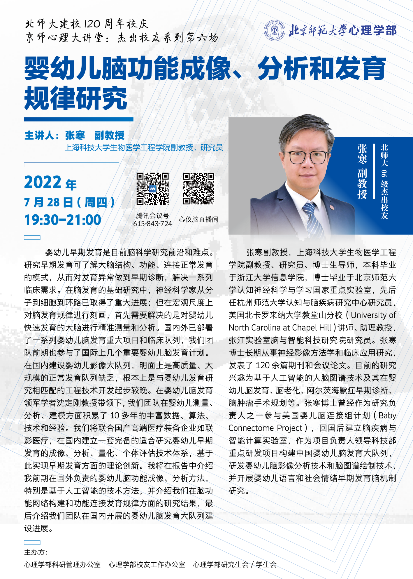 【校友讲座】婴幼儿脑功能成像、分析和发育规律研究