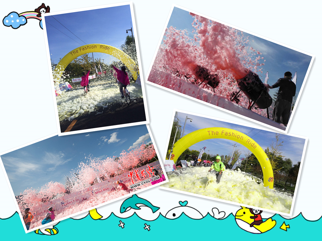 在The Fashion Ride北京站的活动中,最吸引人眼球的莫过于“骑行服”:每位活动的参与者都可以在拿到的装备包内获得一件趣味骑行服,而这些骑行服共有49种不同造型及颜色。在骑行区内,数千人的彩色骑行服方阵一时间化成了秋日中一幅别样的景色。9:30,骑行活动准时开始。心理学院校友们分别领取了骑行自行车,开启了园博园骑行之旅。大家边骑行,边欣赏美丽的风景。骑行过程中,活动主办方通过趣味活动向公众提倡“骑行”这种健康绿色、低碳环保的出行新方式。